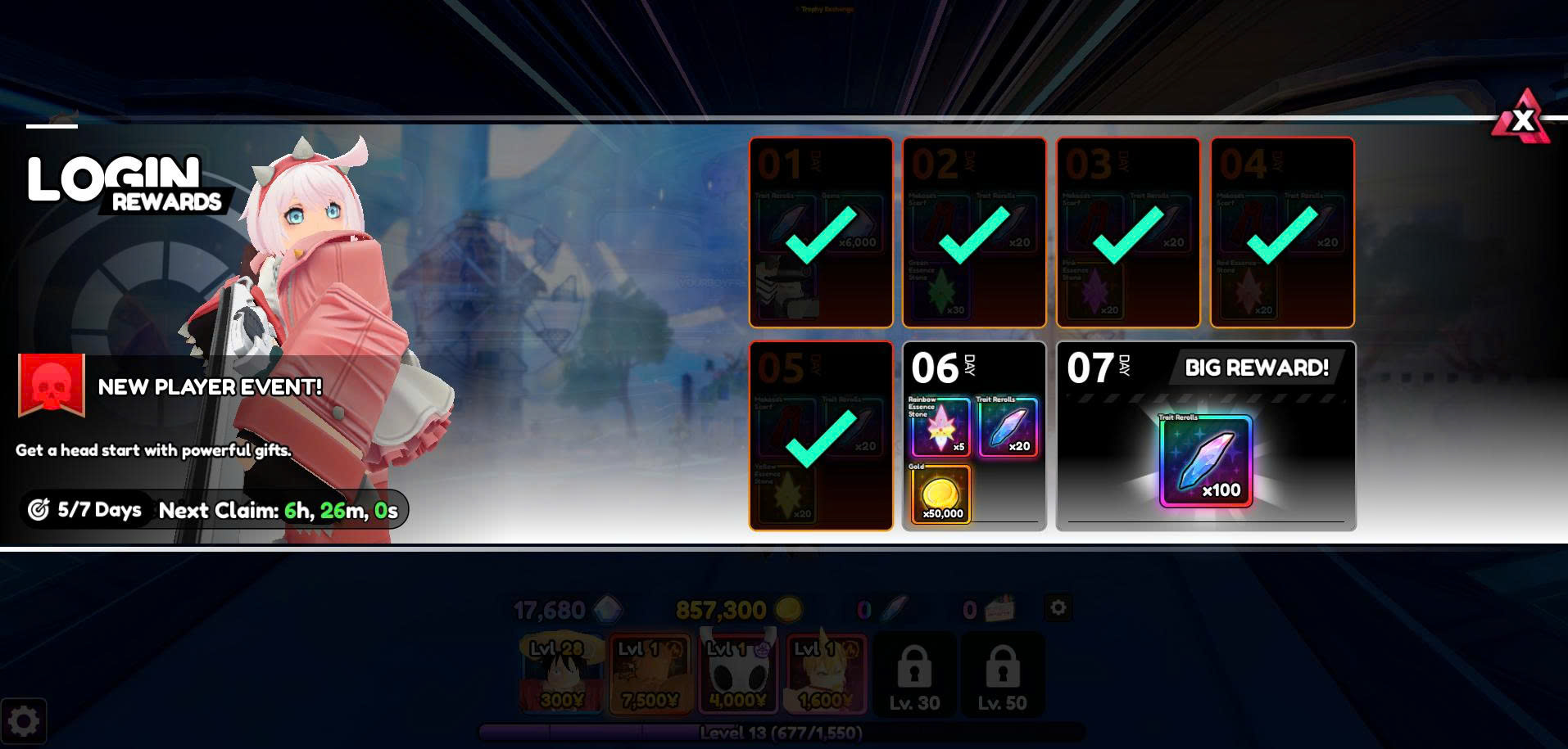 Acc Clone Escanor Solar , Còn Điểm Danh 2 Ngày Cuối, Battle Pass Lv38,17k Gems, 850k Gold, Lv13
